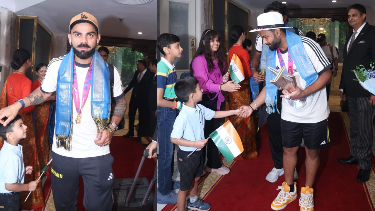 होटल प्रशासन की तरफ से सभी खिलाड़ियों को उनकी तस्वीर भी दी गई। होटल में हर तरफ जश्न का माहौल है। इस दौरान विराट कोहली और पंत बच्चों पर खूब प्यार लुटाते नजर आए। होटल प्रशासन ने कहा कि विश्व चैंपियन का स्वागत करना उनके लिए गर्व की बात है।