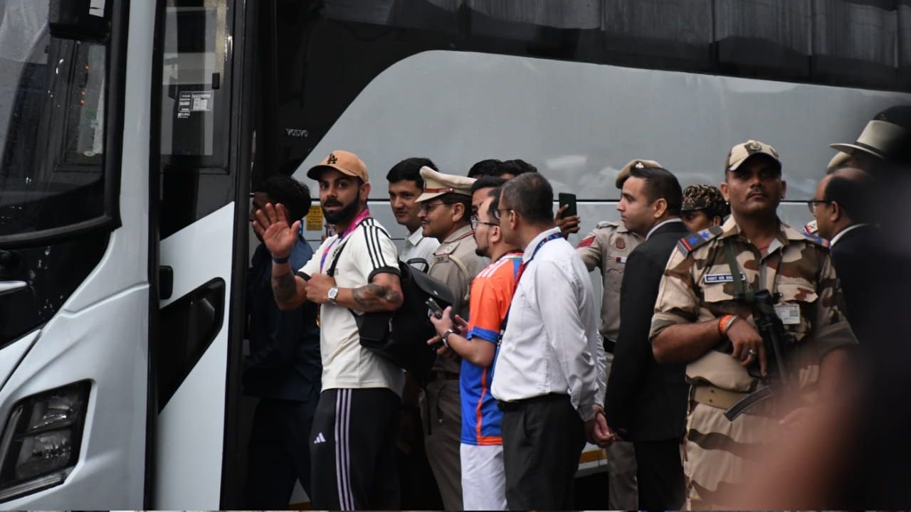 होटल के बाहर मौजूद फैंस अपने पसंदीदा खिलाड़ियों की झलक पाने को बेताब थे। भारतीय टीम की बस पहुंचते ही फैंस ने उल्लास के साथ खिलाड़ियों का स्वागत किया। बस में विराट कोहली सबसे आगे बैठे थे। उनके बाद हार्दिक पांड्या बैठे थे।