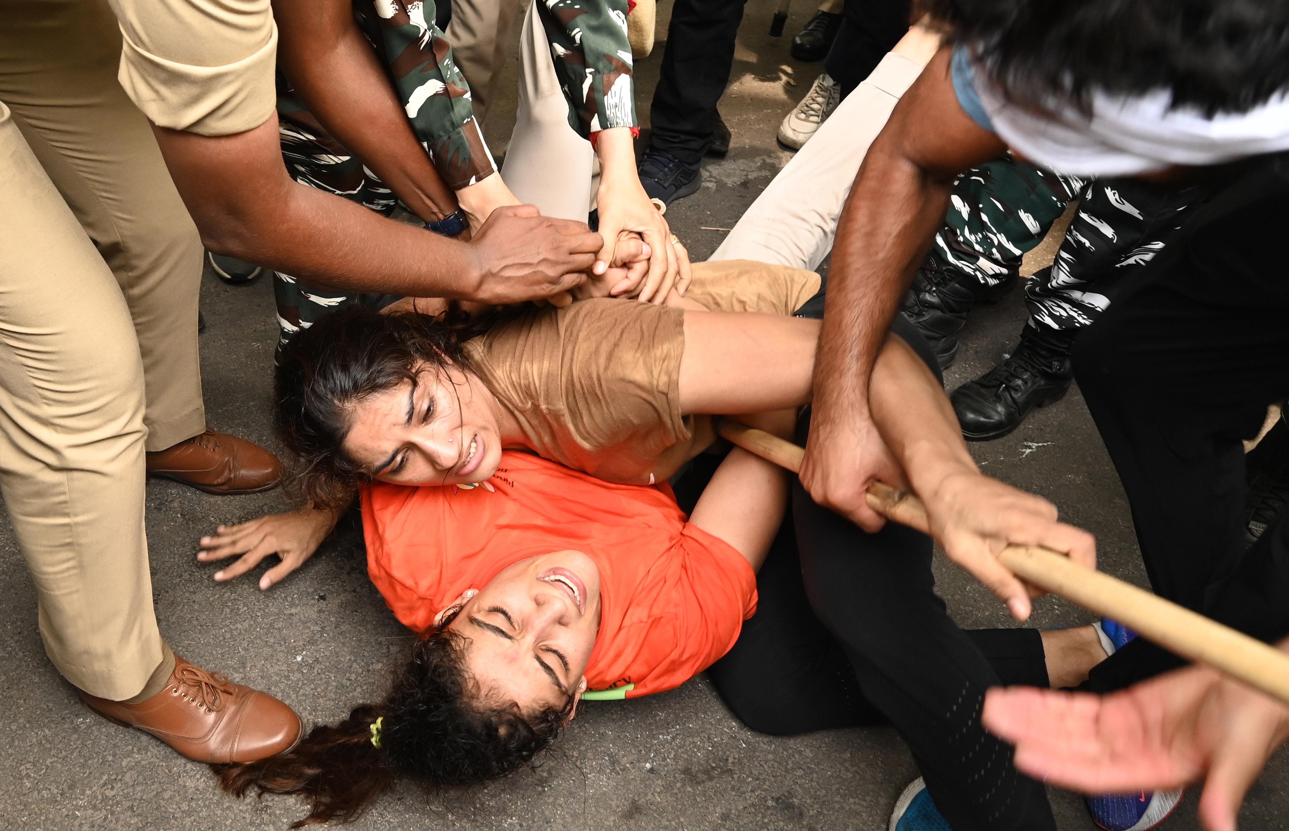 पुलिस अधिकारी का कहना है कि पुलिसकर्मियों ने बिना लाठी चार्ज किए प्रदर्शनकारियों को हिरासत में लिया। इस दौरान पहलवान साक्षी मलिक ने एक महिला सुरक्षाकर्मी के पेट में पैर मार दी, जिससे उन्हें अस्पताल में भर्ती करना पड़ा।