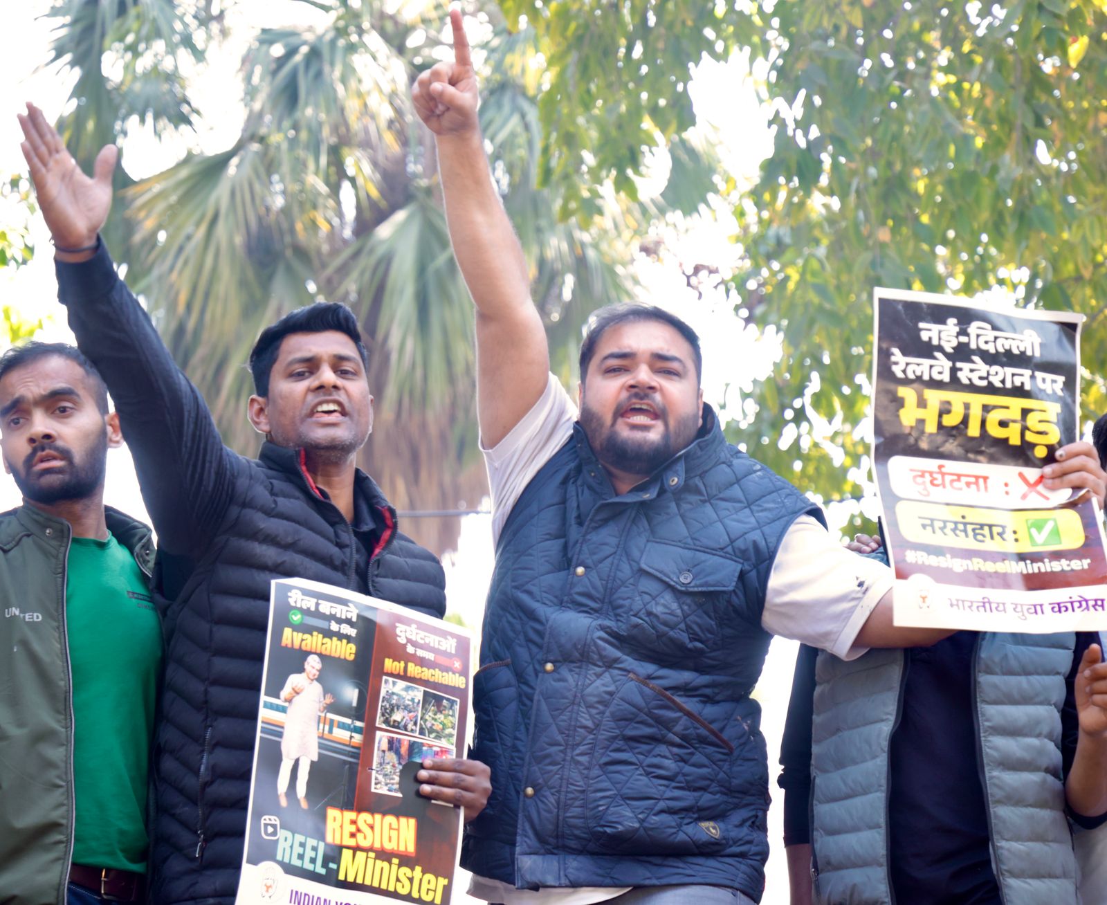 जागरण संवाददाता, नई दिल्ली। नई दिल्ली रेलवे स्टेशन पर मची भगदड़ में 18 लोगों की मौत और 25 से अधिक लोगों के घायल होने के मामले में युवा कांग्रेस ने विरोध प्रदर्शन किया और रेल मंत्री अश्विनी वैष्णव के इस्तीफे की मांग की।