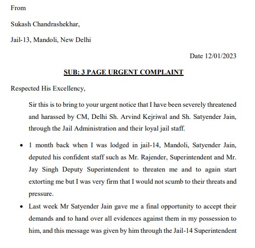 चंद्रशेखर द्वारा पहले लिखे गए पत्र में दावा किया गया था कि उन्होंने पार्टी में पद के लिए दिल्ली सरकार को 50 करोड़ रुपये से अधिक और जेल में बंद मंत्री सत्येंद्र जैन को 10 करोड़ रुपये से अधिक का भुगतान किया था। बता दें कि सुकेश चंद्रशेखर ने यह दावा 7 अक्टूबर को लिखे एक पत्र में किया था।