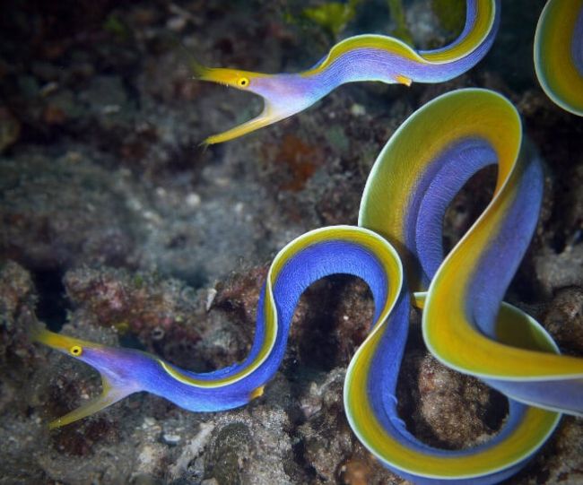 - जब रिबन ईल और अधिक बूढ़ा हो जाता है, तो इसका शरीर धीरे-धीरे पीले रंग में बदल जाता है।