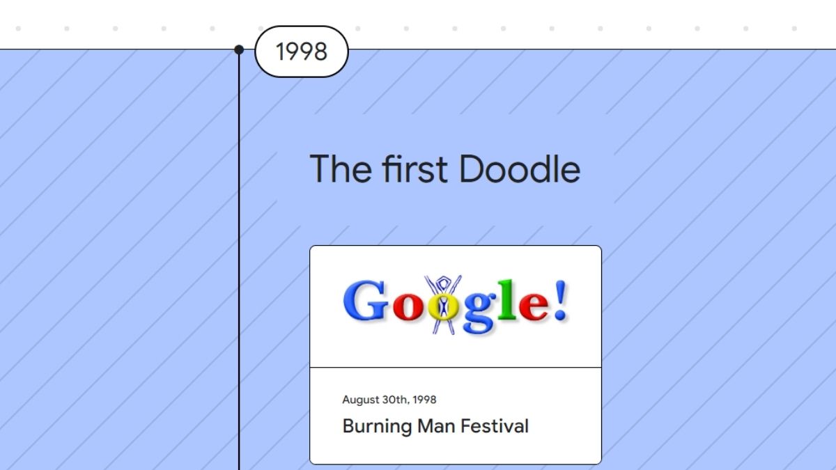 गूगल का सबसे पहला डूडल 30 अगस्त, 1998 को आया था। गूगल के इस डूडल में यूजर्स को एक ऑफिस मैसेज दिया गया था। यह डूडल Google के संस्थापकों लैरी पेज और सर्गेई ब्रिन द्वारा लोगों को यह बताने का काम कर रहा था कि वे बर्निंग मैन के लिए ऑफिस से बाहर होंगे।