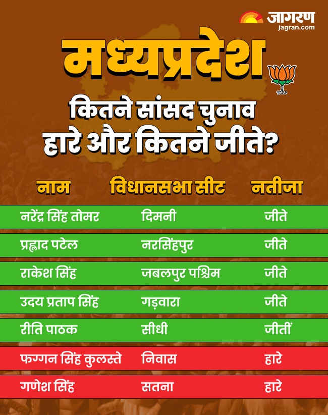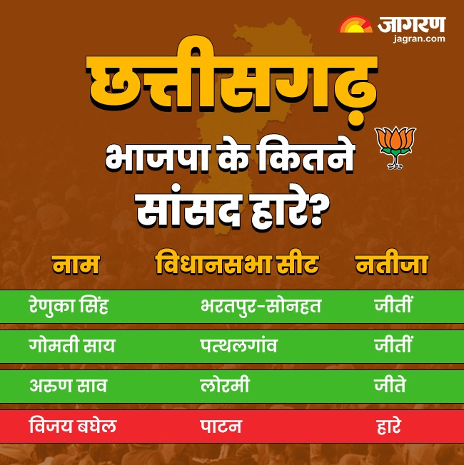 भारतीय जनता पार्टी ने पांचों राज्यों के चुनावी मैदान में मौजूदा सांसदों व केंद्रीय मंत्रियों को भी टिकट दिया था। भाजपा ने मध्यप्रदेश व राजस्थान में सात-सात, छत्तीसगढ़ में चार और तेलंगाना में तीन मौजूदा सांसदों को चुनावी मैदान में उतारा था। इनमें से 12 चुनाव जीत गए, जबकि नौ सांसद अपनी सीट बचाने में नाकामयाब साबित हुए।
