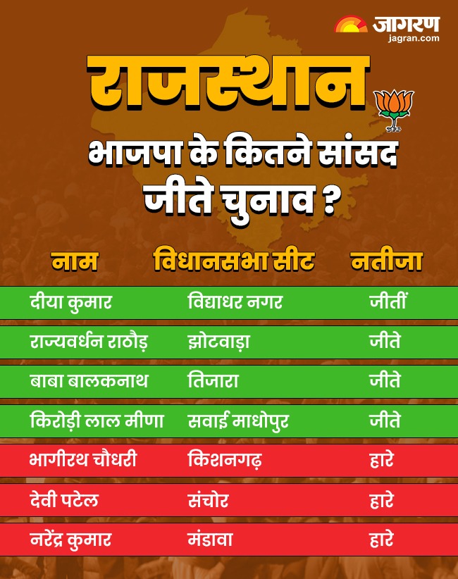 - डॉ. किरोड़ी लाल मीणा: बीजेपी ने राज्यसभा सांसद किरोड़ी लाल मीणा को सवाई माधोपुर सीट से टिकट दिया था। मीणा ने 22510 वोटों से कांग्रेस के दानिश अबरार को हराया है। बता दें कि मीणा की छवि किसान नेता की है और वह भाजपा के टिकट पर कई बार विधायक और सांसद चुने जा चुके हैं।