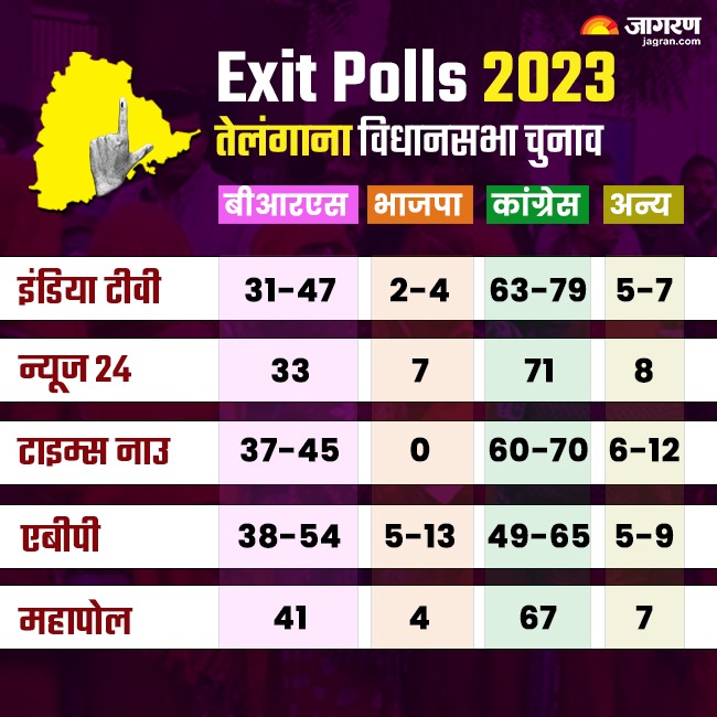 तेलंगाना में सभी 119 सीटों पर गुरुवार को ही मतदान हुआ। तेलंगाना में के चंद्रशेखर राव की पार्टी भारत राष्ट्र समिति (बीआरएस) अधिकांश एग्जिट पोल में कांग्रेस से चुनाव हारती हुई नजर आ रही है।