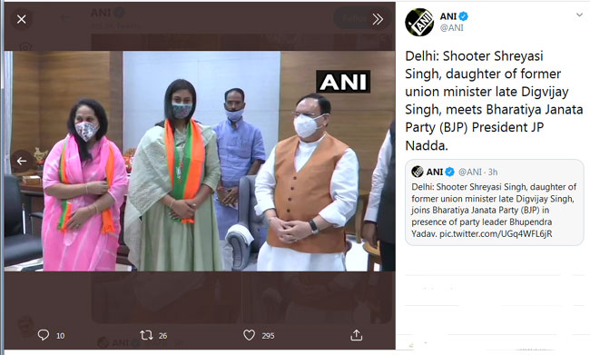श्रेयसी ने पार्टी के राष्ट्रीय अध्यक्ष जेपी नड्डा, महासचिव अरूण सिंह और बिहार बीजेपी अध्यक्ष डॉ. संजय जायसवाल की मौजूदगी में पार्टी के दिल्ली कार्यालय में रविवार को बीजेपी की सदस्यता ग्रहण की। इस अवसर श्रेयसी की मां पुतुल सिंह भी मौजूद रहीं। इसके पहले उनके राष्ट्रीय जनता दल (RJD) में भी शामिल होने के कयास लगाए जा रहे थे। कहा जा रहा था कि इसके लिए तेजस्वी यादव (Tejashwi Yadav) उनसे संपर्क में थे।