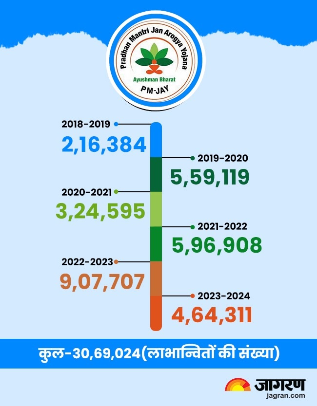 योजना के तहत प्रदेश में 02 करोड़ 02 लाख 05 हजार 315 व्यक्ति पंजीकृत हैं। योजना लागू होने से अब तक 30 लाख 69 हजार 24 लोगों का निशुल्क इलाज हुआ है।