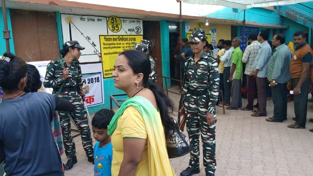 रायपुर के टिकरापारा संजयनगर स्कूल मतदान केंद्र में महिला सुरक्षार्मी भी तैनात हैं।