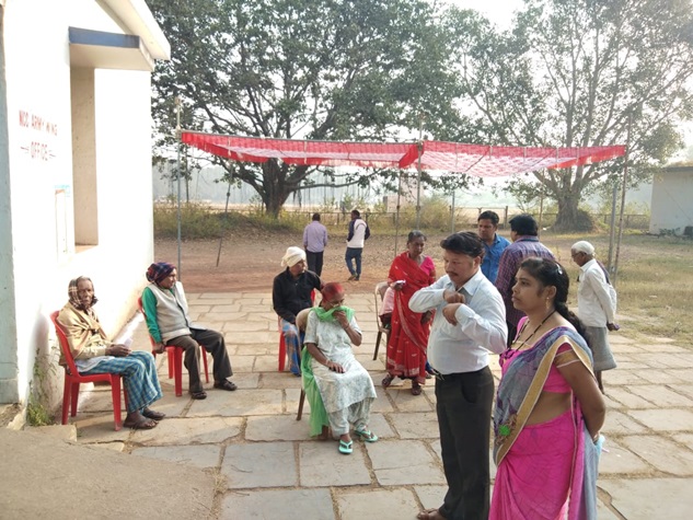 भिलाई में सेक्टर नंबर दो के बाहर बुजर्ग मतदाता मतदान शुरू होने का इंतजार करते हुए।