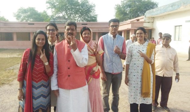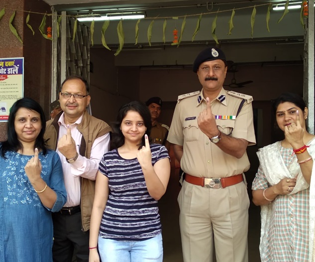 दुर्ग में जिला निर्वाचन अधिकारी व कलेक्टर दुर्ग उमेश अग्रवाल और एसपी संजीव शुक्ला ने परिवार सहित किया मतदानl