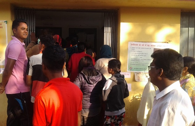 नक्सली धमकी के बावजूद यहां मतदाता वोटिंग के लिए उमड़ रहे हैं।