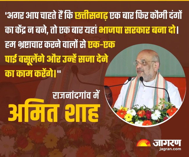 अमित शाह ने कहा कि भूपेश बघेल सरकार ने राज्य की जनता से किया गया एक भी वादा पूरा नहीं किया। इनकी वोटबैंक की राजनीति के कारण ही भुवनेश्वर साहू की हत्या कर दी गई। अगर आप चाहते हैं कि छत्तीसगढ़ एक बार फिर कौमी दंगों का केंद्र न बने, तो एक बार यहां भाजपा सरकार बना दो, हम भ्रष्टाचार करने वालों से एक एक पाई वसूलेंगे और उन्हें सजा देने का काम करेंगे।