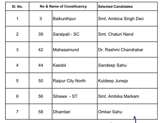 Chhattisgarh Election 2023: कांग्रेस ने सात उम्मीदवारों की तीसरी सूची की जारी, इन विधायकों के कटे टिकट