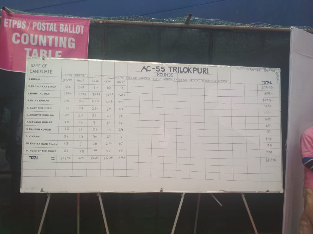 -त्रिलोकपुरी सीट पर आप उम्मीदवार 20, 000 वोटों से आगे चल रहे हैं।