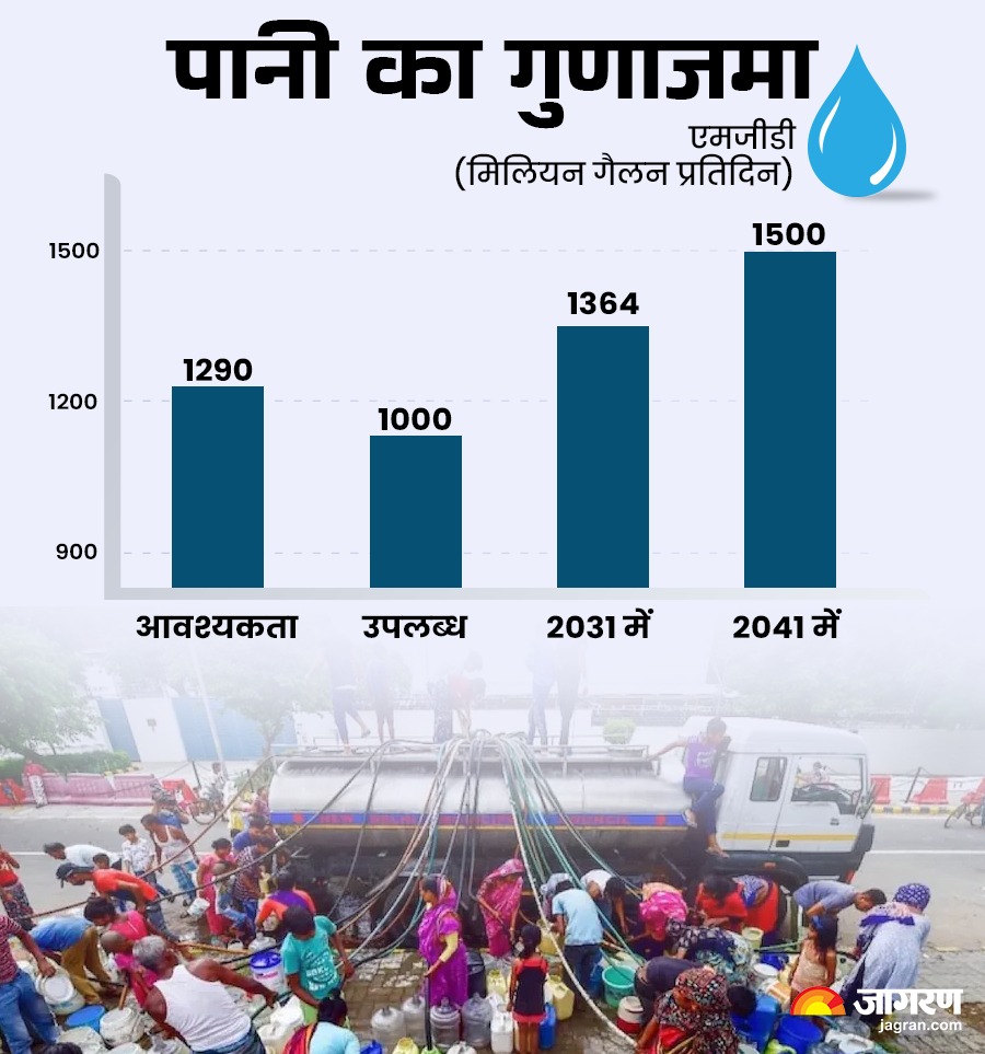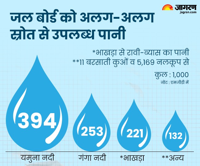 दिल्ली जल बोर्ड एक हजार एमजीडी पेयजल उपलब्ध कराने का दावा करता है। दिल्ली की आबादी तीन करोड़ तक पहुंच रही है। इस तरह से प्रति व्यक्ति प्रति दिन 190 लीटर पानी की उपलब्धता है।