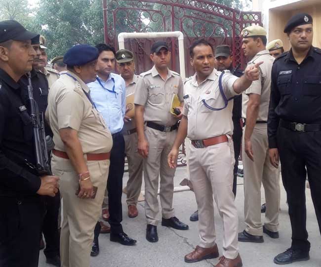 कैथल में मतगणना केंद्र के बाहर तैनात पुलिस।