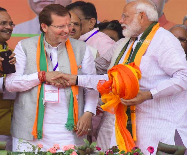 रोहतक से भाजपा के प्रत्याशी अरविंद शर्मा के साथ प्रधानमंत्री नरेंद्र माेदी।