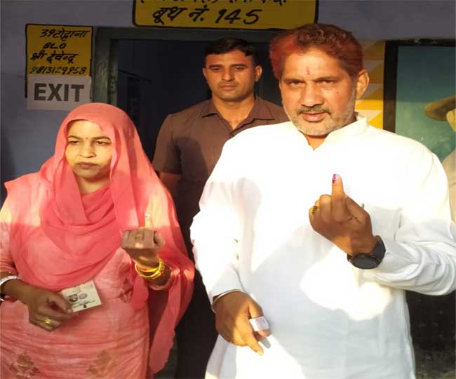 8.55 AM: कैथल से कांग्रेस प्रत्याशी रणदीप सिंह सुरजेवाला व धर्मपत्नी गायत्री सुरजेवाला ने मतदान किया।