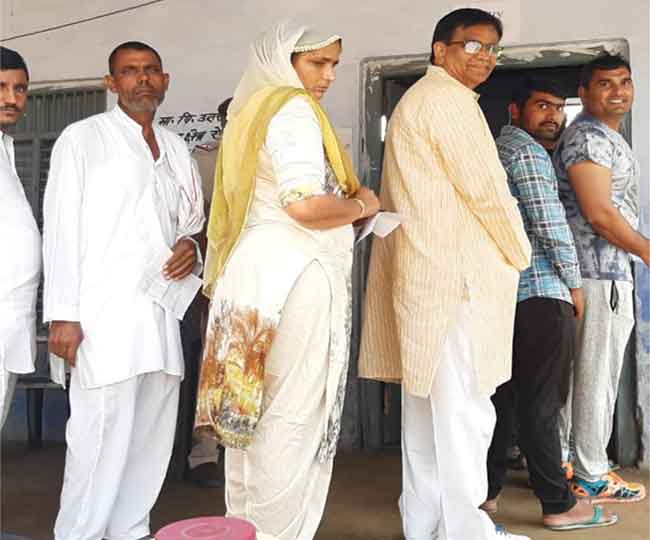 सिरसा में एक बूथ पर लगी मतदाताओं की कतार।