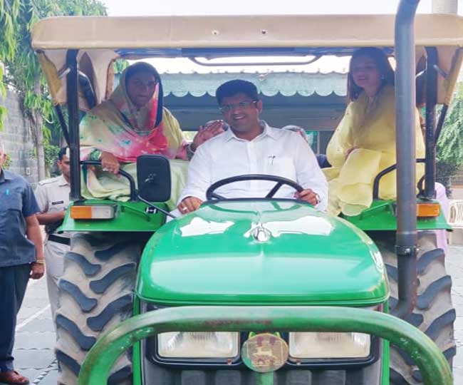 8.35 AM: सिरसा में जननायक जनता पार्टी के नेता दुष्यंत चौटाला अपनी मां नैना चौटाला और पत्नी मेघना चौटाला के साथ ट्रैक्टर पर सवार होकर पहुंचे। तीनों ने अपने मताधिकार का प्रयोग किया।