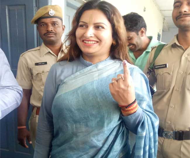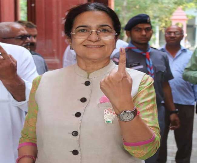 हिसार में मतदान करने के बाद आदमपुर से भाजपा प्रत्याशी सोनाली फौगाट।