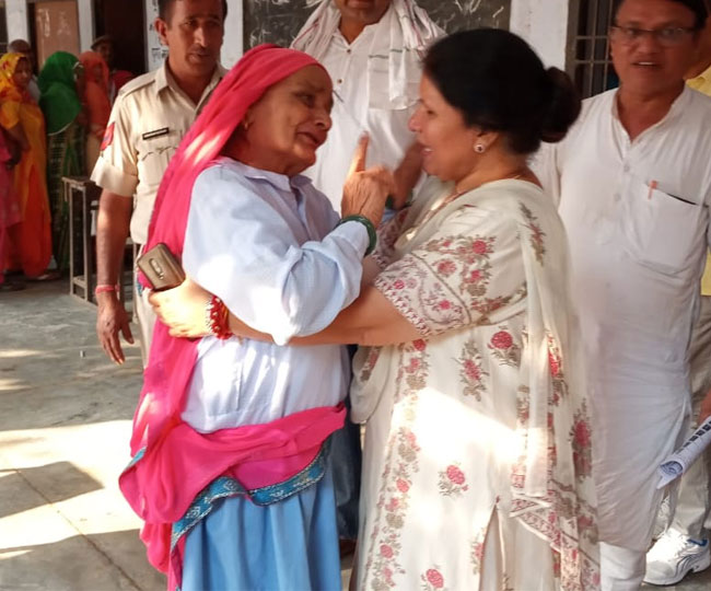 झज्जर विधानसभा से कांग्रेस प्रत्याशी गीता भुक्कल एक बुजुर्ग मतदाता से बूूूथ के बाहर कुछ यूं गले मिलती नजर आई।