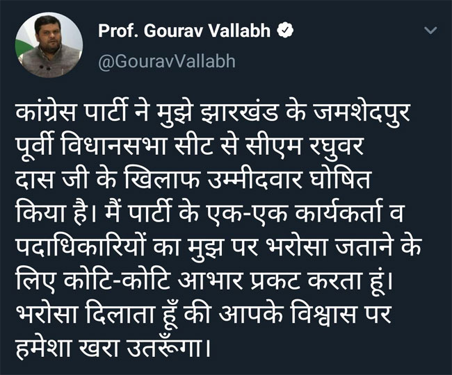 Jharkhand Assembly Election 2019. मुख्यमंत्री रघुवर दास उनके कैबिनेट के मंत्री सरयू राय और कांग्रेस की ओर से गौरव बल्लभ इस सीट पर आमने-सामने हो सकते ह ...और पढ़ें