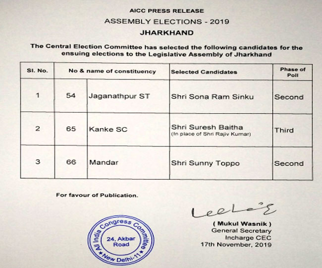 Jharkhand Assembly Election 2019 भारी विरोध के बाद कांग्रेस ने बदला कांके का उम्मीदवार तीन नामों की सूची में मांडर व जगन्नाथपुर से पार्टी ने दिए नए ना ...और पढ़ें