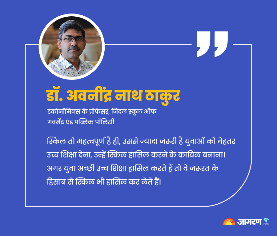 अवनींद्र ठाकुर- युवाओं में स्किल बढ़ाना तो जरूरी है ही, लेकिन मेरे विचार से स्किल कई बार अस्थायी होता है। उदाहरण के लिए, जब 1990 के दशक में आईटी में बूम आया तो लोगों ने आईटी की स्किल हासिल की। उसके बाद डिमांड आईटी से मैनेजमेंट की तरफ शिफ्ट हो गई तो लोग मैनेजमेंट की स्किल लेने लगे और उसमें ओवर सप्लाई की स्थिति आ गई। मेरे विचार से स्किल तो महत्वपूर्ण है ही, उससे ज्यादा जरूरी है युवाओं को बेहतर उच्च शिक्षा देना, उन्हें स्किल हासिल करने के काबिल बनाना। अगर युवा अच्छी उच्च शिक्षा हासिल करते हैं तो वे जरूरत के हिसाब से स्किल भी हासिल कर लेते हैं। अगर हम विकसित देशों से तुलना करें तो आज भी एनरोलमेंट और ड्रॉप आउट जैसे मामलों में उच्च शिक्षा में हमारी स्थिति बहुत अच्छी नहीं है। इसे सुधारने की जरूरत है।