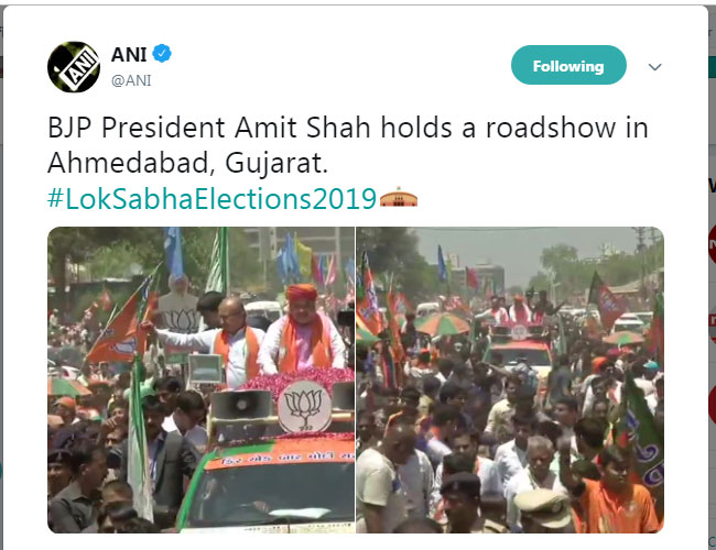 अहमदाबाद, एएनआइ। भाजपा अध्यक्ष अमित शाह ने गुजरात के अहमदाबाद में रविवार को रोड शो किया। अमित शाह के रोड शो में भारी भीड़ उमड़ी है।