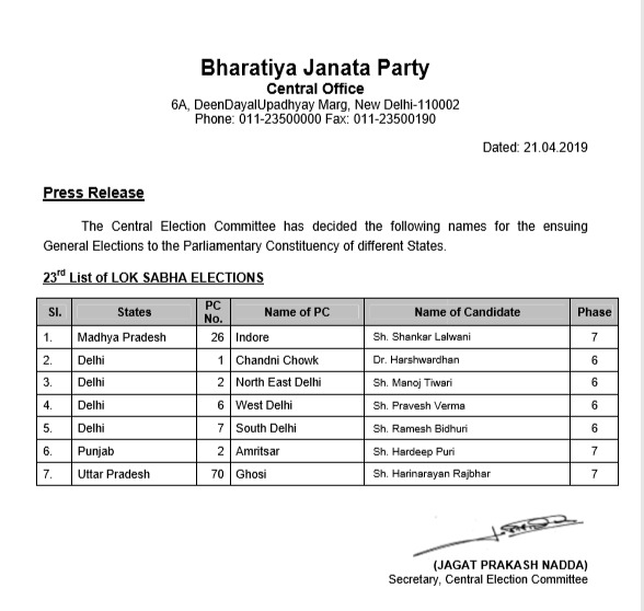 Loksabha Election 2019 : भाजपा ने घोसी से हरिनरायन राजभर का नाम किया घोषित
