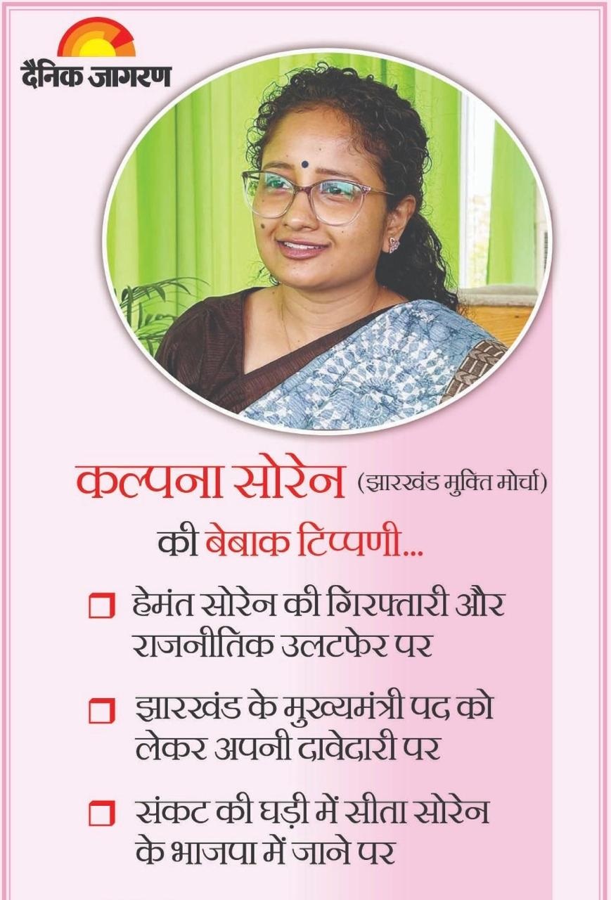 Kalpana Soren Exclusive Interview हेमंत सोरेन के जेल जाने के बाद उनकी पत्नी कल्पना सोरेन ने झारखंड में गठबंधन और झामुमो का चुनावी अभियान संभाला हुआ है और आक्रमकता के साथ प्रचार में लगी हुई हैं। पेश है उनके साथ खास बातचीत जहां उन्होंने भविष्य में सीएम बनने की संभावनाओं से लेकर सीता सोरेन के भाजपा में जाने समेत तमाम मुद्दों पर अपनी बात रखी है।