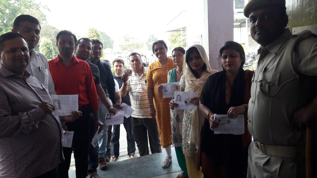 सहारनपुर गंगोह के एचआर इंटर कालेज के बूथ 182 पर ईवीएम आधे घंटे देर से चली।