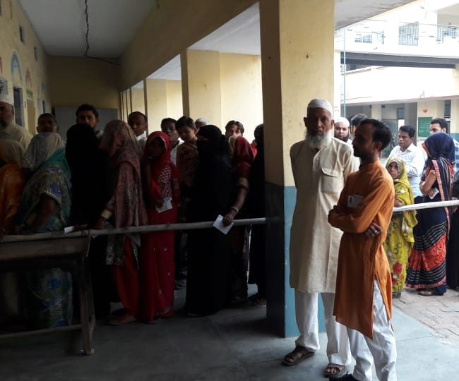 बिहार में घरों से बाहर निकले वोटर। नवादा शहर के न्यू एरिया बूथ 257,258 व 359पर मतदान करने पहुंचे मतदाता।