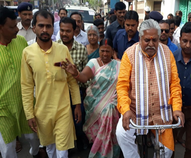 गया जिला के स्वराज पुरी रोड स्थित मतदान संख्या 120 पर बिहार सरकार के कृषि मंत्री डॉ प्रेम कुमार मतदान करने लिए साइकिल से पहुंचे।