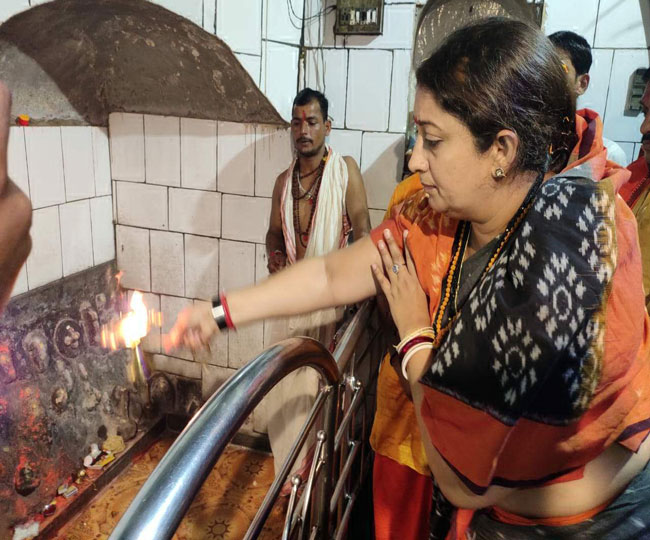 स्मृति ने कालिकन धाम में किया पूजन अर्चन