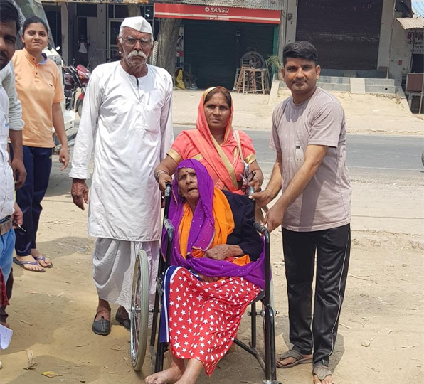 * मुजफ्फरनगर के सिसौली गांव में 80 वर्षीय महिला को मतदान के लिए व्हील चेयर पर मतदान केंद्र में ले जाते हुए लोग।