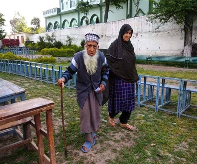 जम्मू कश्मीर के बांदीपोरा जिले से एक फोटो सामने आई है जिसमें एक महिला इतनी बुजुर्ग हैं कि वो ठीक से खड़ी भी नहीं हो पा रही हैं। लेकिन उन्होंने अपने मतदान का प्रयोग किया है।