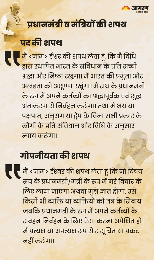 Narendra Modi Oath Ceremony क्या आपके मन में कभी यह विचार आया कि आखिरकार शपथ ग्रहण समारोह इतना महत्वपूर्ण क्यों होता है। राष्ट्रपति प्रधानमंत्री राज्यों के मुख्यमंत्री मंत्री और पंचायत के पंच व सरपंच तक आखिरकार क्यों और किस बात की शपथ लेते हैं? हमारे देश के संविधान में शपथ ग्रहण को लेकर क्या नियम हैं? शपथ तोड़ने या इस उल्लंघन करने पर देने पर सजा का प्रावधान है?