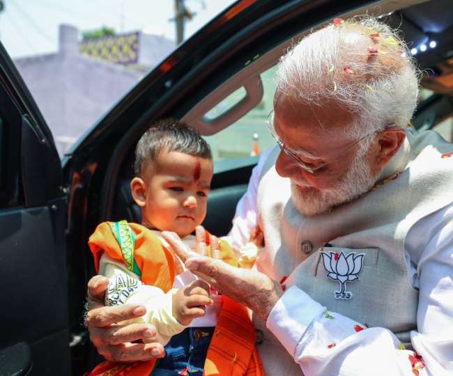पीएम मोदी ने चुनावी रैली के दौरान एक छोटे से बच्चे को गोद में उठाकर उसे दुलार किया।