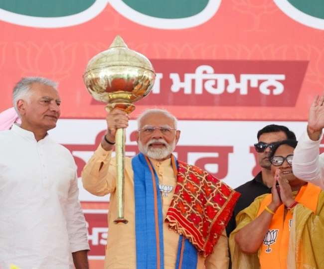 पीएम मोदी ने पंजाब में चुनाव-प्रचार के दौरान जनसभा को संबोधित किया। इस दौरान उन्होंने गदा उठाकर विजय का शंखनाद किया।