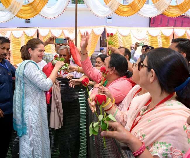 अपने समर्थकों से गुलाब का फूल स्वीकार करतीं प्रियंका गांधी। इस फोटो को लोगों ने खूब पसंद किया।