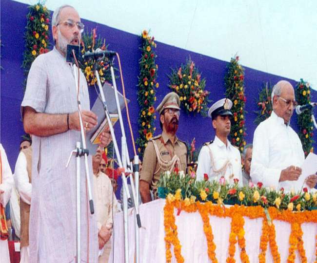 7 अक्टूबर 2001 को उन्होंने पहली बार गुजरात के मुख्यमंत्री के रूप में शपथ ली थी। उस समय उनकी उम्र 51 साल थी। उन्होंने केशूभाई की जगह ली थी।