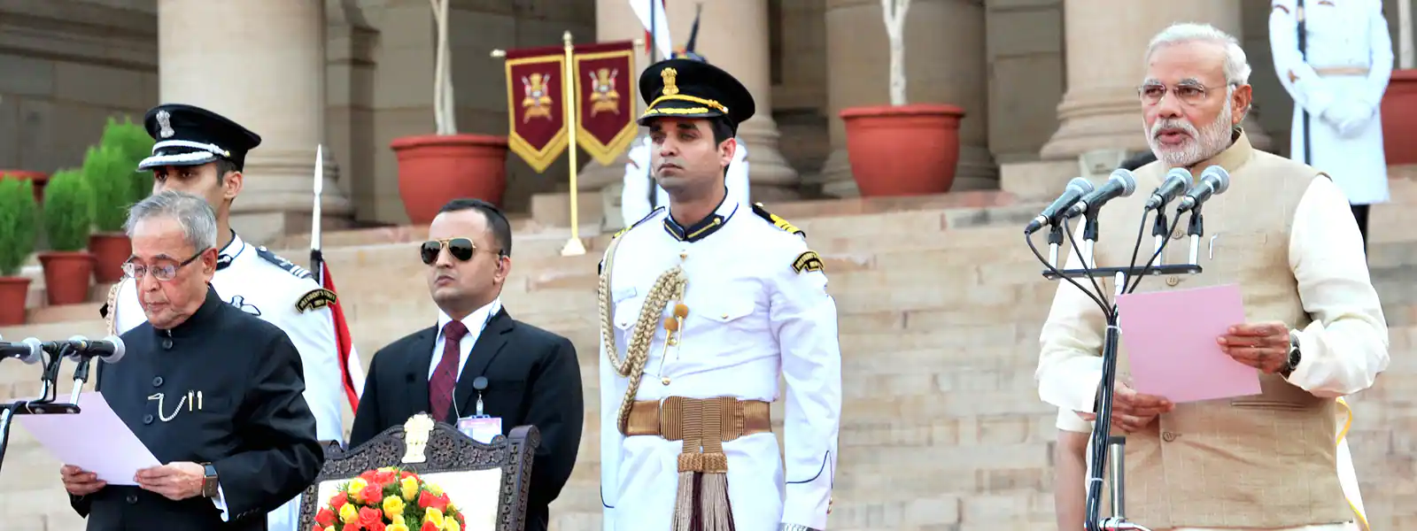 2014 में शपथ ग्रहण करते हुए नरेन्द्र मोदी। (फोटो - इंटरनेट मीडिया)