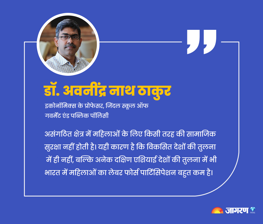 अवनींद्र ठाकुर- आज भी हमारा समाज पुरुष प्रधानता से बाहर नहीं निकल पाया है। घर में बच्चों-बुजुर्गों की देखभाल की जिम्मेदारी महिलाओं पर ज्यादा है। अगर कोई महिला काम के लिए बाहर जाती है तो उस पर दोहरा बोझ होता है। इसलिए अनेक महिलाएं नौकरी करने से बचती हैं। दूसरी बात, काम का वातावरण अनेक जगहों पर महिलाओं के अनुकूल नहीं है। तीसरी बात है ट्रांसपोर्टेशन। भारत में महिलाओं के लिए काम की जगह आना-जाना आज भी काफी चुनौतीपूर्ण रहता है। जब कोई महिला काम के लिए बाहर जाने का निर्णय लेती है तो उसमें इन बातों का काफी असर रहता है।