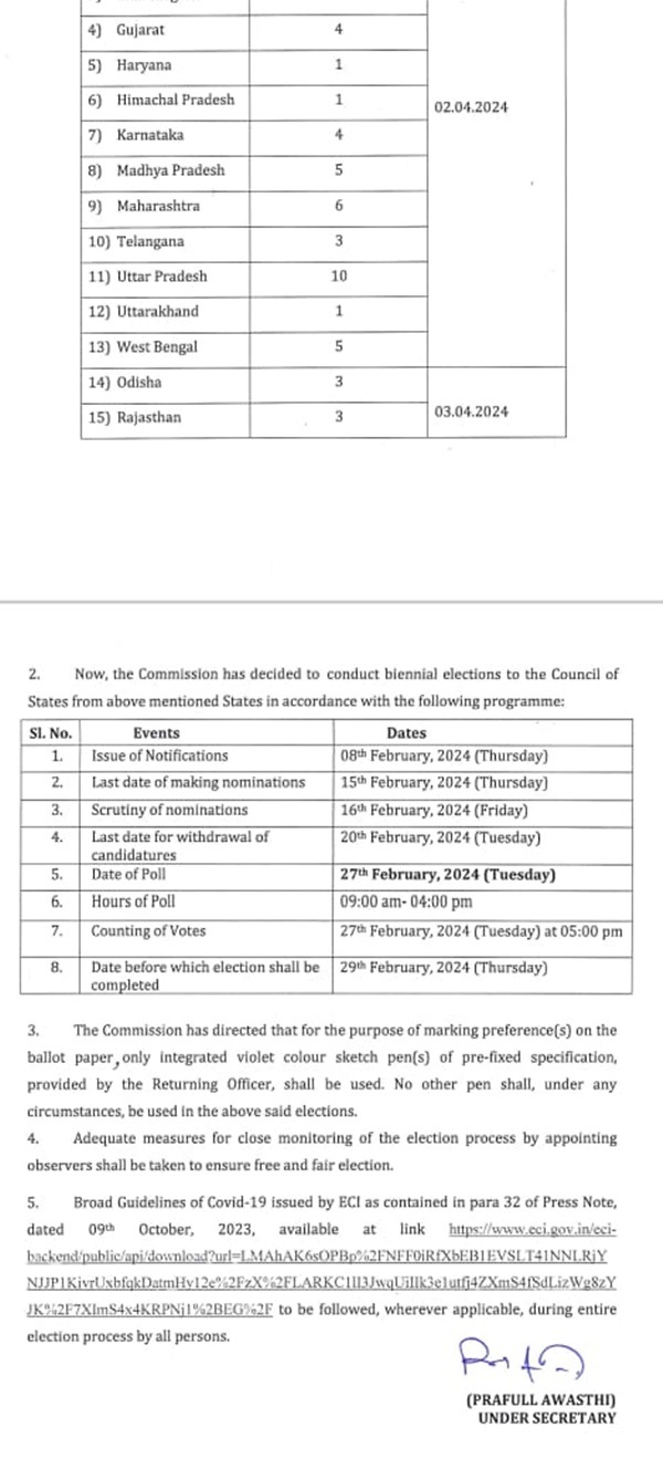 ओडिशा में राज्यसभा की खाली हो रही तीन सीटों के लिए 27 फरवरी को चुनाव होगा। ओडिशा से रेल मंत्री अश्विनी वैष्णव के साथ राज्यसभा के तीन सदस्य का कार्यकाल तीन अप्रैल को समाप्त हो रहा है।