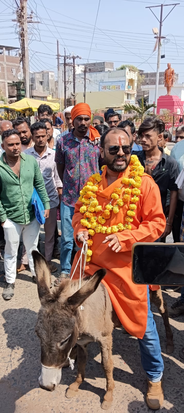 वहीं, गुरुवार दोपहर निर्दलीय प्रत्याशी के रूप में नामांकन फॉर्म जमा करने के लिए ठाकुर प्रियंक सिंह गधे पर बैठकर रिटर्निंग ऑफिसर के कार्यालय पहुंचे।