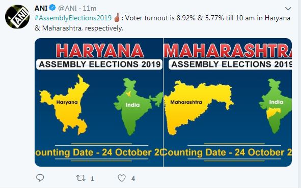 बता दें, महाराष्ट्र की 288 और हरियाणा की 90 सीटों के लिए आज वोट डाले जा रहे हैं। दोनों ही राज्यों के चुनावी नतीजे 24 अक्टूबर को घोषित किए जाएंगे।