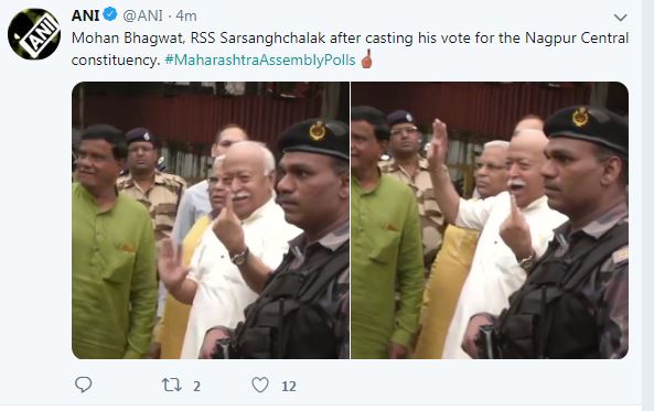 आरएएसएस के सर संघचालक मोहन भागवत ने आज नागपुर में सुबह-सुबह अपना वोट डाला। नागपुर के महल क्षेत्र के एक मतदान केंद्र पर उन्होंने अपने मताधिकार का इस्तेमाल किया।